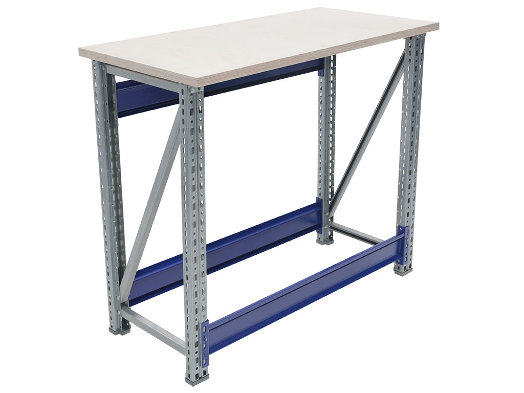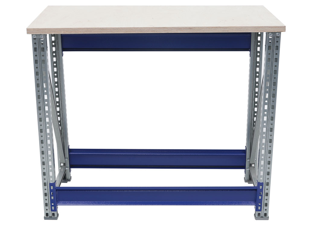 - Основные элементы верстака (опоры, полка, накладка на столешницу) изготовлены из оцинкованной стали, что позволяет устанавливать его в местах с повышенной влажностью.