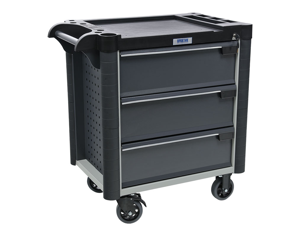 - Топ (пластик черного цвета) оснащён ложементами под инструменты для организации, хранения и удобства использования во время выполнения работ. Нагрузка на ТОП – 40 кг