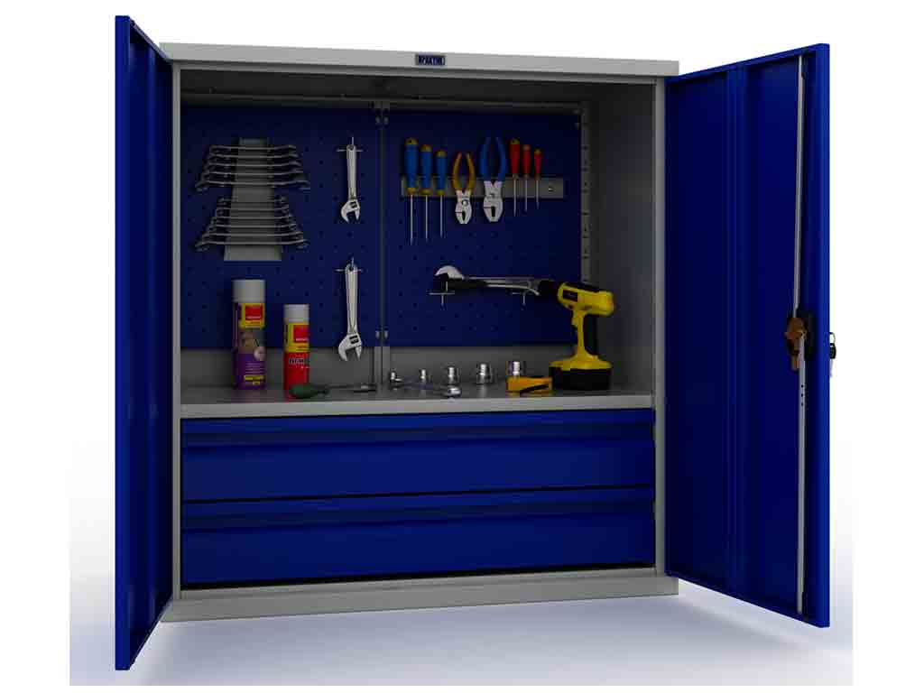 Предназначен для хранения инструментов, слесарных приспособлений и других изделий на предприятиях, мастерских, автосервисах.