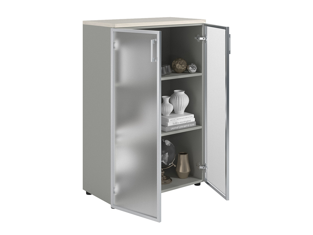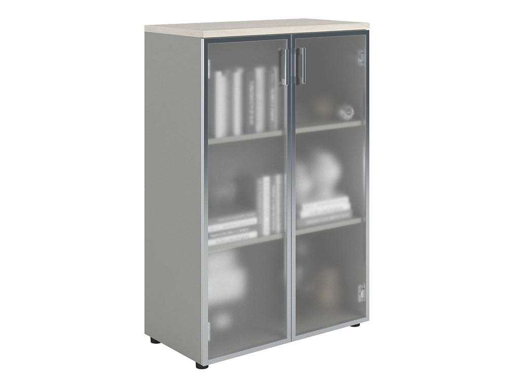 Шкаф NW 1280/2G со стеклом белое дерево/серый