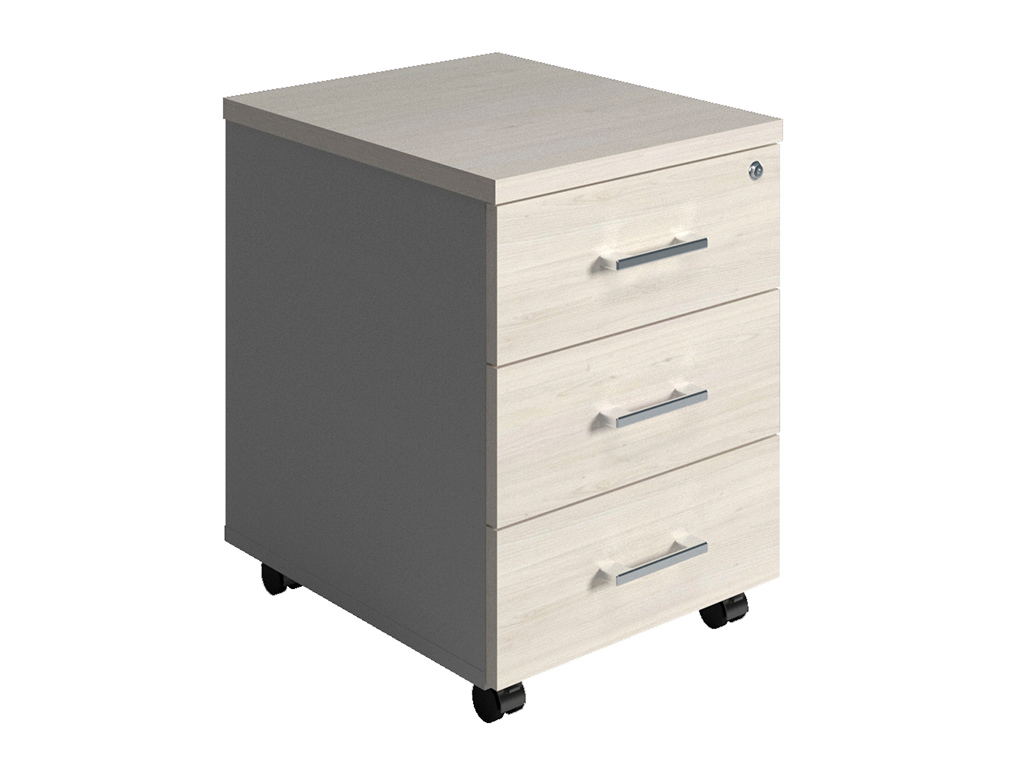 - тумба снабжена центральным замком и оснащена пластмассовым лотком для канцелярских принадлежностей в верхнем ящике