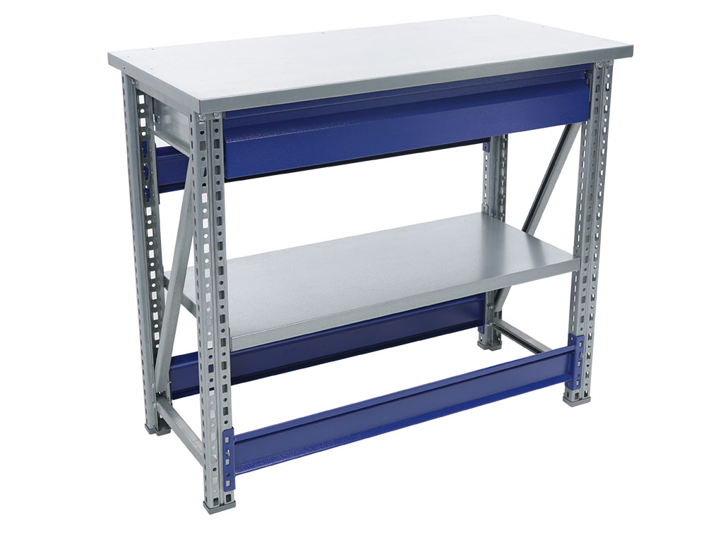 - Возможность дополнить верстак полкой (нагрузка 100 кг) и выдвижным ящиком (нагрузка 30 кг).